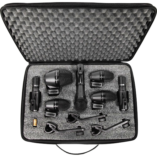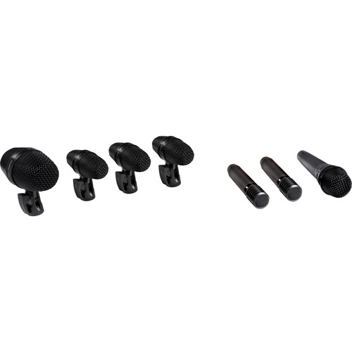 El PGADRUMKIT7 de Shure es un kit de 7 micrófonos de batería de calidad profesional, diseñado para capturar el sonido en sets de bombo, caja y tom con micrófono cercano. Se puede usar en aplicaciones de audio para escenarios en vivo, teatros, lugares de culto y más.